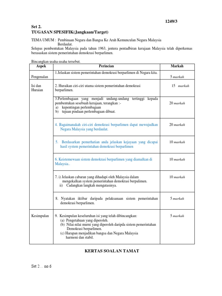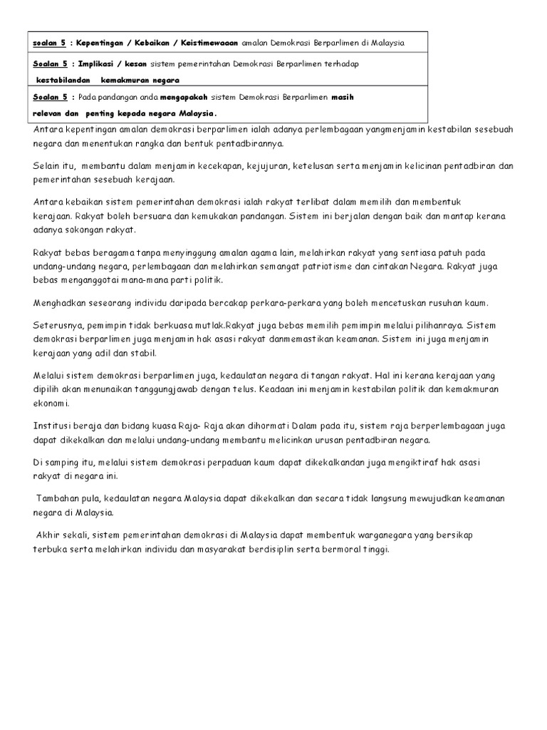 Pemerintahan dan pentadbiran negara adalah berasaskan suatu sistem yang telah sedia. Contoh Soalan Jawapan Sejarah Kertas 3 Tingkatan 5 Bab 7. 26052017 2 FEDERALISME Sistem raja berperlembagaan federalisme dan demokrasi berparlimen merupakan teras utama kepada kelicinan dan ketelusan sistem pemerintahan.